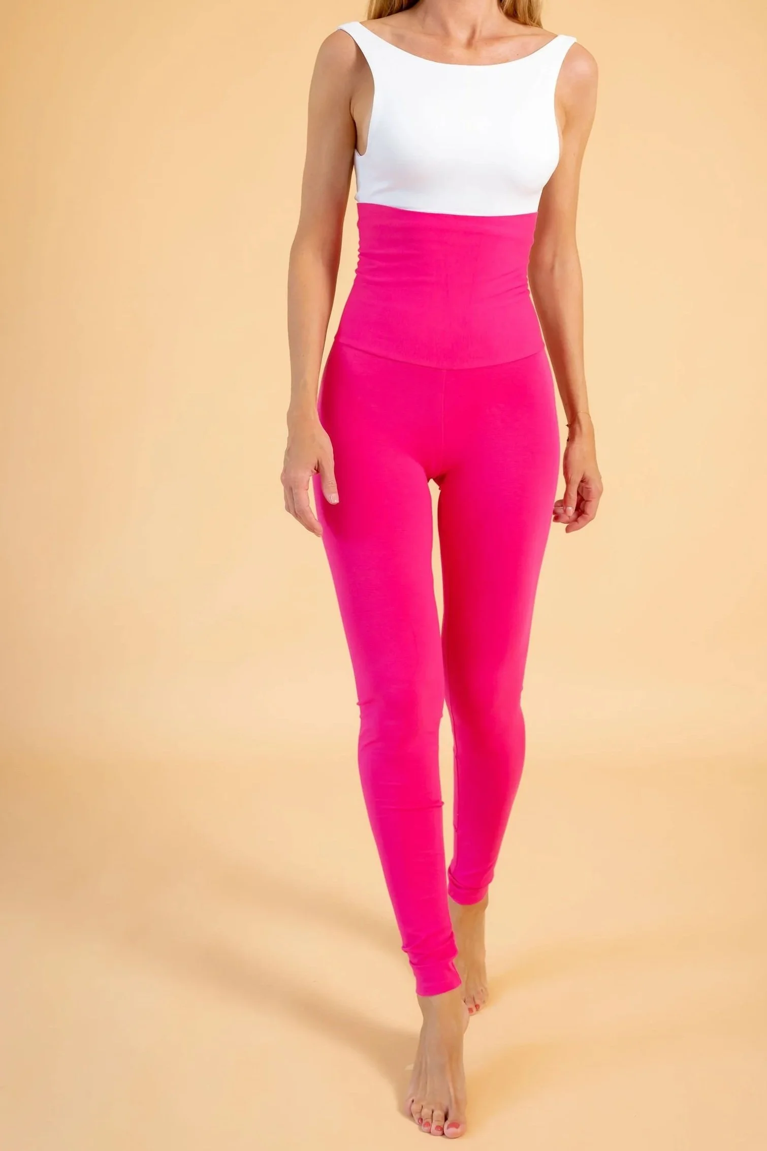 High-waisted Cotton Leggings - Fuchsia